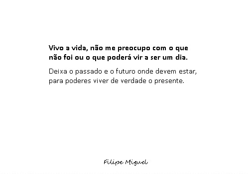 Vivo a vida, não me preocupo com o que não foi ou o que poderá vir a ser um dia. O que tiver que ser, será. O que não tiver que existir, não existirá.