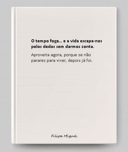 Por isso, vive hoje. Acredita nos teus sonhos hoje. Ama, arrisca, sente. Alinha os ponteiros da tua vida com o que realmente importa.