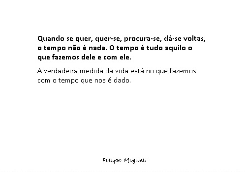 Quando se quer, quer-se, procura-se, dá-se voltas, o tempo não é nada. O tempo é tudo aquilo o que fazemos dele e com ele.