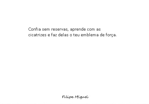 Não sei viver sem criar expectativas, penso que deve ser um enorme exercício viver sem as criar. Já imaginaram viverem assim? Deduzo que tudo o que advir será “ganho”, sejam amores ou amigos. Confio à partida e meto as mão no fogo até prova em contrário, resultado: queimo-me algumas vezes e algumas queimaduras deixam cicatrizes profundas e difíceis de curar. Prefiro isso, a ser desconfiado de tudo e de todos. Na realidade, nós somos os verdadeiros culpados, criamos elevadas expectativas sobre os outros, mas também nos traímos a nós mesmos. Se me decepciono mais? Sim, é verdade! É que nunca se sabe, todas as pessoas têm fases, é melhor dar sempre o benefício da dúvida! Mas também vou tendo algumas surpresas agradáveis e essas por vezes valem muito.
