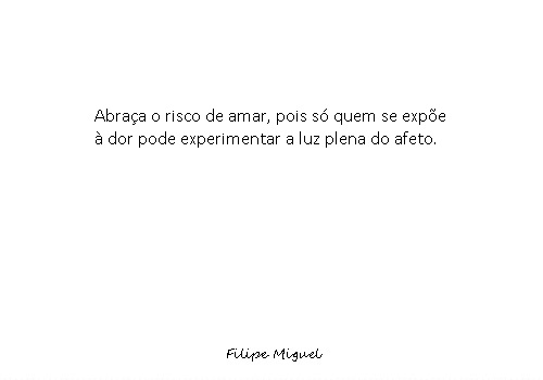 O amor como tudo na vida tem riscos, mas só quem não se esquiva pode também usufruir dos prazeres de estar enamorado.