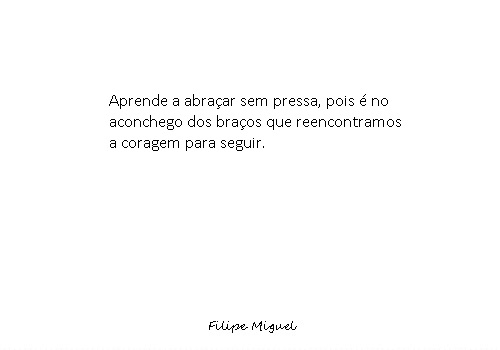 Um abraço daqueles sentidos, demorados, que falam sem dizer uma palavra. Porque às vezes, o que a gente precisa mesmo é de dois braços à volta do corpo e de um coração que se encoste ao nosso.