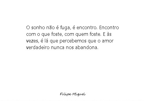 Sonhar é tão bom, quando és tu que estás nele comigo. Os melhores sonhos são aqueles em que não queremos sair de lá, é o mais próximo que consigo estar perto de ti. E é por isso que sonhar é tão bom, peço-te que fiques sempre, para sempre nele.