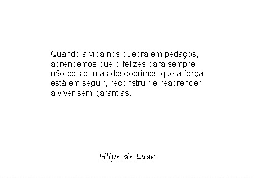 E quando a vida nos parte a meio, levando parte de nós, o felizes para sempre deixa de existir, porque há uma peça que nunca poderá ser substituída! Mas seguimos em frente e reaprendemos a viver!