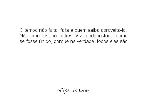 Falta de tempo não há, não sabemos é aproveitar o tempo que temos.