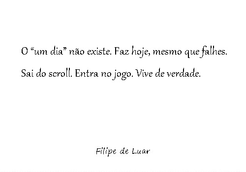 Então arrisca. Manda mensagem. Faz o curso. Muda de cidade. Começa o projecto. Diz que sim. Diz que não. Faz o que te acende por dentro. Porque a vida não é um ensaio, é o palco principal, e tu és o protagonista.