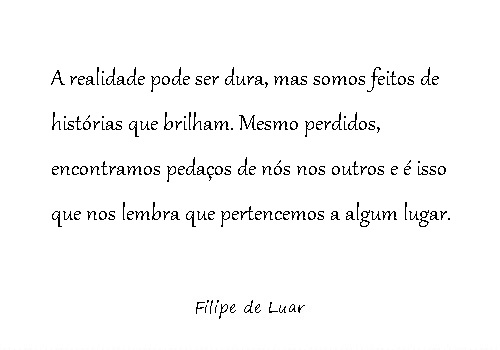 Mas há algo que ninguém nos tira: a capacidade de encontrar sentido nos pedaços. Nos pequenos gestos. Nos olhares que dizem “eu percebo-te”. Nas conversas às três da manhã. Nos abraços que seguram o que as palavras não conseguem. Nos momentos em que, mesmo perdidos, sentimos que pertencemos a algum lugar, nem que seja ao coração de alguém.