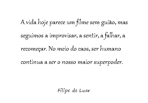 Mas há algo que ninguém nos tira: a capacidade de sentir. E sentir é revolucionário. Sentir cansaço, sentir alegria, sentir medo, sentir vontade de mudar tudo, isso é sermos humanos. E, honestamente, num mundo que parece cada vez mais automático, ser humano é quase um superpoder.