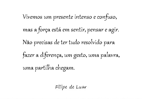 Se há algo que este tempo nos ensina é isto: não precisamos de ter tudo resolvido para começar a fazer a diferença. Às vezes basta um gesto, uma palavra, uma partilha, uma conversa sincera.