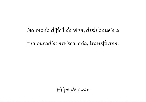 A realidade actual pode ser pesada, confusa, injusta, acelerada. Mas também é o palco perfeito para quem tem coragem de ser diferente, de pensar fora da caixa, de arriscar, de falhar, de tentar outra vez, de criar algo novo, de ser a versão mais honesta e mais ousada de si próprio.