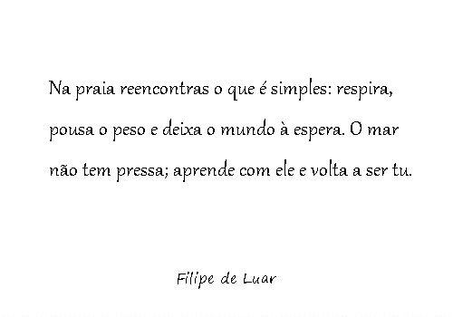 A praia lembra-nos disso. Lembra-nos que o mar não tem pressa, que as ondas não pedem desculpa por irem e voltarem, que o sol não se apressa para nascer nem para se pôr. E nós, que andamos sempre a correr, devíamos aprender com isso.