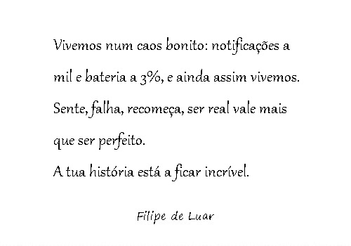 E sabes o que é mais bonito? É que, apesar de tudo, continuamos a acreditar. Acreditar que vale a pena. Acreditar que o amor ainda salva. Acreditar que o futuro pode ser melhor, mesmo quando o presente nos dá nódoas negras.