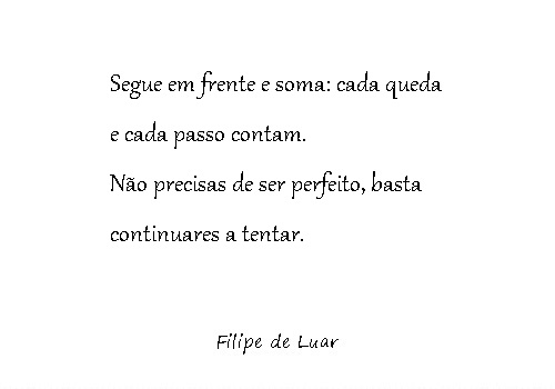 E, no meio disto tudo, há uma coisa bonita: cada passo que dás, mesmo os mais pequenos, contam. Cada avanço, cada tentativa, cada recomeço. Tudo soma. Tudo constrói. Tudo te leva mais longe do que imaginas.