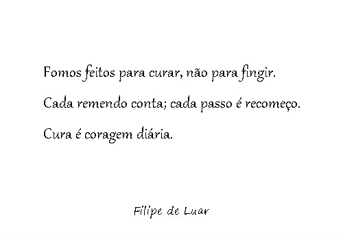 Há quem pense que a vida é sobre ser forte o tempo todo, mas a verdade é bem mais simples e bem mais bonita. Fomos construídos para muita coisa, mas sobretudo para curar. Mesmo quando não parece. Mesmo quando dói. Mesmo quando achamos que já não temos mais espaço para remendar nada.