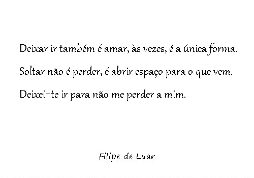 Deixei‑te ir não porque deixei de sentir, mas porque comecei a sentir‑me. Porque percebi que ficar por ficar também dói. Porque entendi que insistir no que já não vive só nos prende ao que já não somos.