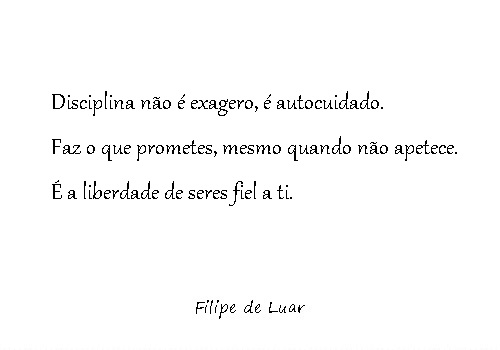 Disciplina não é rigidez. É compromisso. É maturidade. É a ponte entre quem és e quem queres ser.
