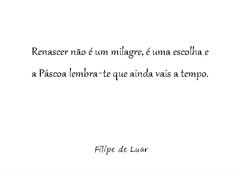 A Páscoa não é sobre ovos, mesas bonitas ou tradições antigas. É sobre renascer por dentro, mesmo que por fora tudo pareça igual. É sobre te dares a hipótese que o mundo nunca te deu. É sobre perceberes que ainda vais a tempo, sempre vais a tempo.